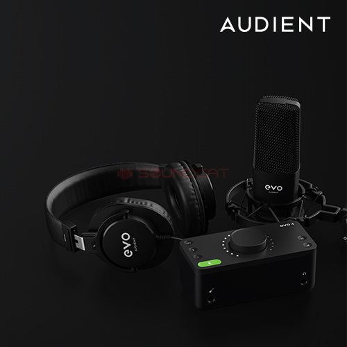 EVO4 오디오인터페이스와 헤드폰, 컨덴서마이크, 쇼크마운트와 XLR 케이블이 함께 담긴 올인원 레코딩 패키지