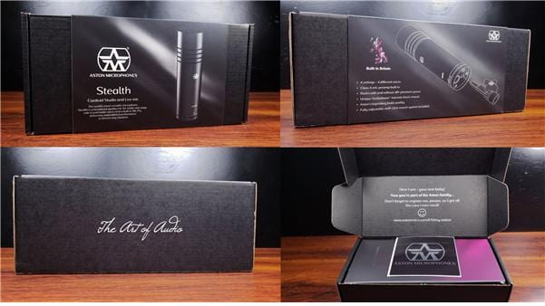 박스 구성은 군더더기 없이 깔끔합니다. ‘Stealth’는 ‘엔드 어드레스’(end-address) 마이크로 실린더 옆이 아닌 안쪽에 말하는 느낌입니다. 내장된 윈드 스크린 역시 아주 유용했습니다. 캡슐을 고정하고 있는 ‘패러데이’(faraday) 케이지는 근거리 녹음 시 발생하는 소음을 완벽히 차단합니다.