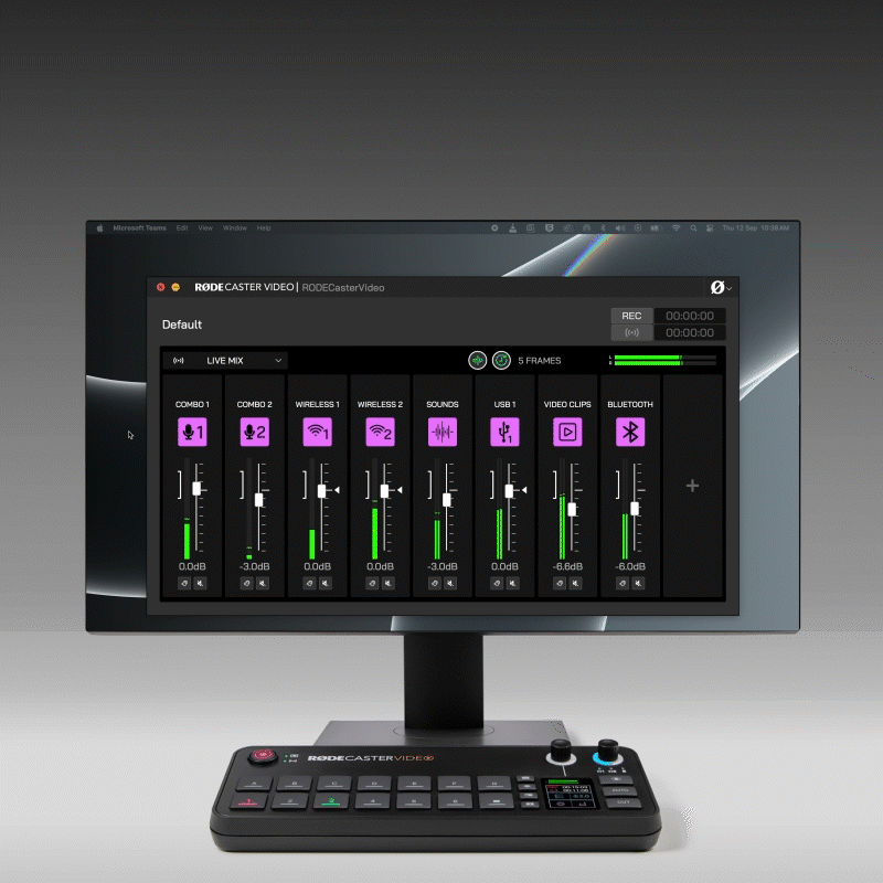 여섯 가지 비디오 피드를 동시에 다룰 수 있는 RØDECaster Video는 카메라, 콘솔, 기타 비디오 입력 소스 간의 자연스러운 전환을 통하여 시청자가 쇼에 더욱 몰입할 수 있도록 해줍니다.