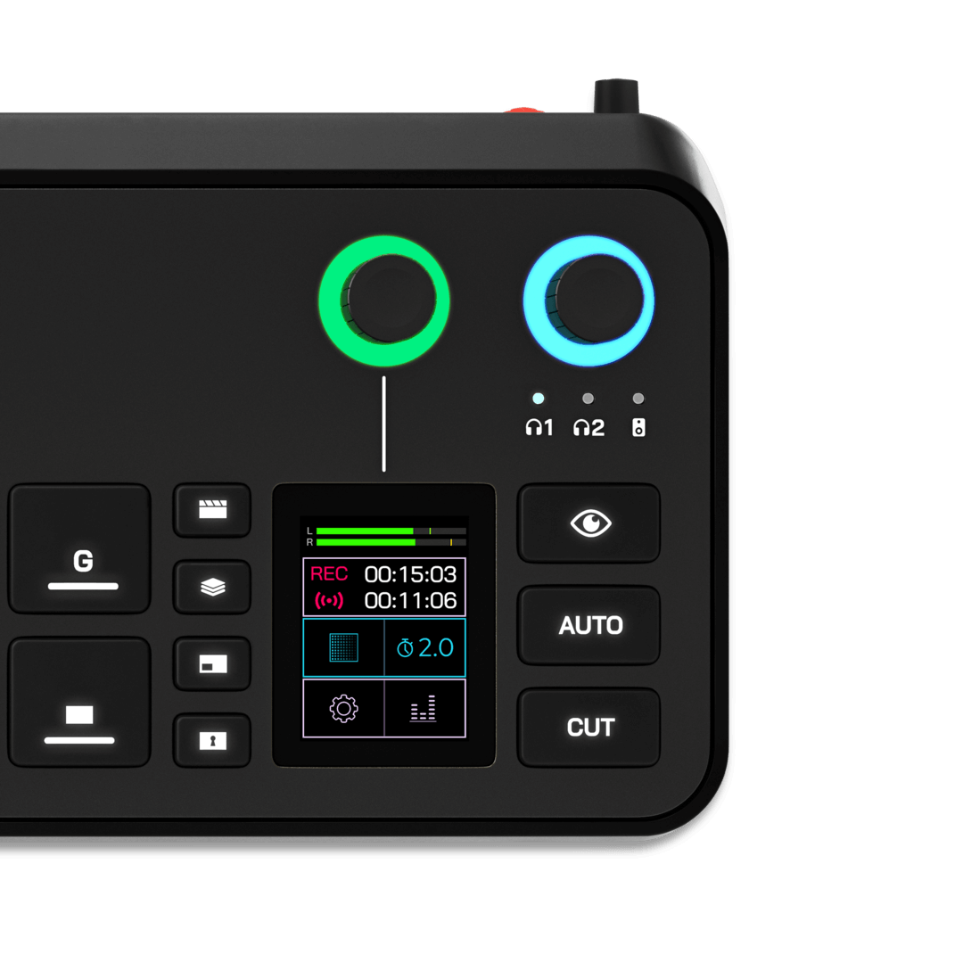 궁극의 올인원 콘텐츠 제작 도구, RØDECaster Video는 비디오와 오디오 프로덕션을 하나로 통합한 최초의 초소형 콘솔입니다.