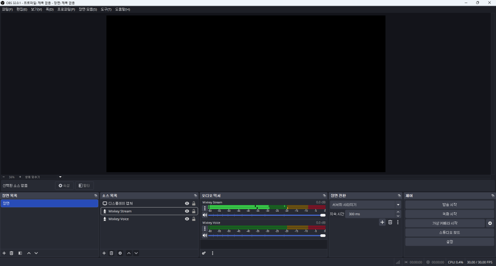 그 후 마이크와 Chrome의 오디오 소스의 볼륨을 적절히 믹스한 뒤 스칼렛 솔로 3세대와 동일하게 OBS에서 오디오 입력 캡처 소스를 추가 - 장치 설정을 'Stream(Steinberg Mixkey)'로 설정해 주면 Chrome의 오디오와 마이크 오디오가 동시에 입력되는 것을 확인할 수 있습니다.