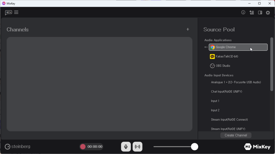 하지만 믹스키에서는 프로그램 별로 오디오 출력을 소스로 제공해 주기 때문에 루프백 기능이 없더라도 손쉽게 루프백과 동일한 효과를 낼 수 있어 이번 믹스키 베타의 발표는 굉장히 반가운 소식이 아닐 수 없습니다.
